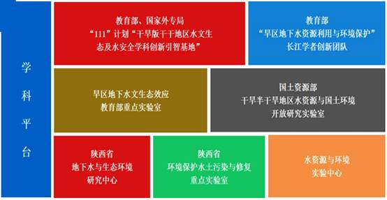 干旱地区水文生态及安全科学创新引智基地”、陕西省环境保护水土污染与修复重点实验室、陕西省地下水与生态环境工程中心、水资源与环境陕西省教学示范中心和省级虚拟仿真实验中心等省部级重点实验室及科研平台。