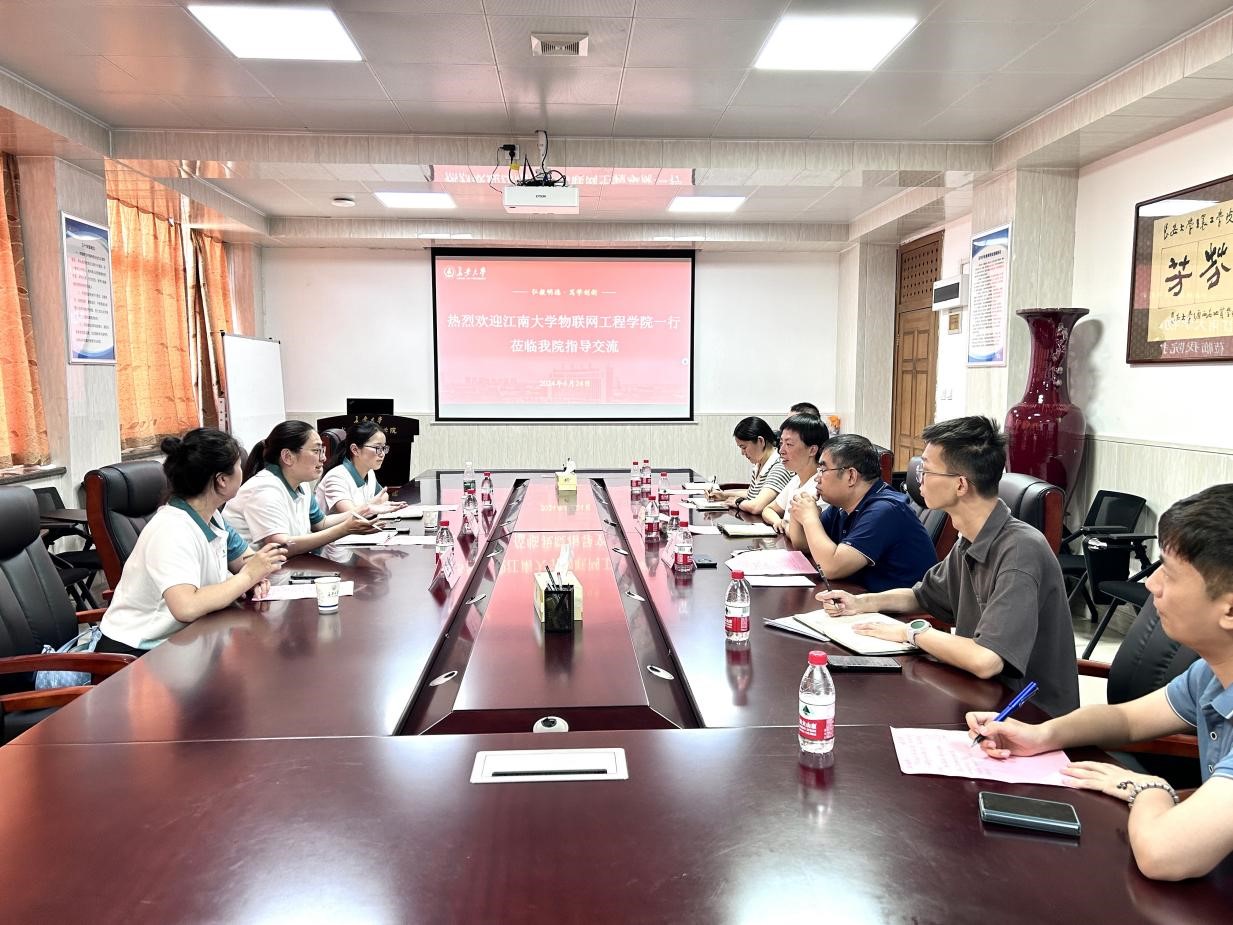 王妍对江南大学物联网工程学院的来访表示热烈欢迎,双方就学生规模、管理模式、辅导员配置、职责划分等基本情况进行简单说明。随后,段磊围绕专业设置、学科建设、人才培养、师资力量等方面介绍了学院总体情况,并指出了学院在多个学科领域所取得的卓越成就与显著成绩。