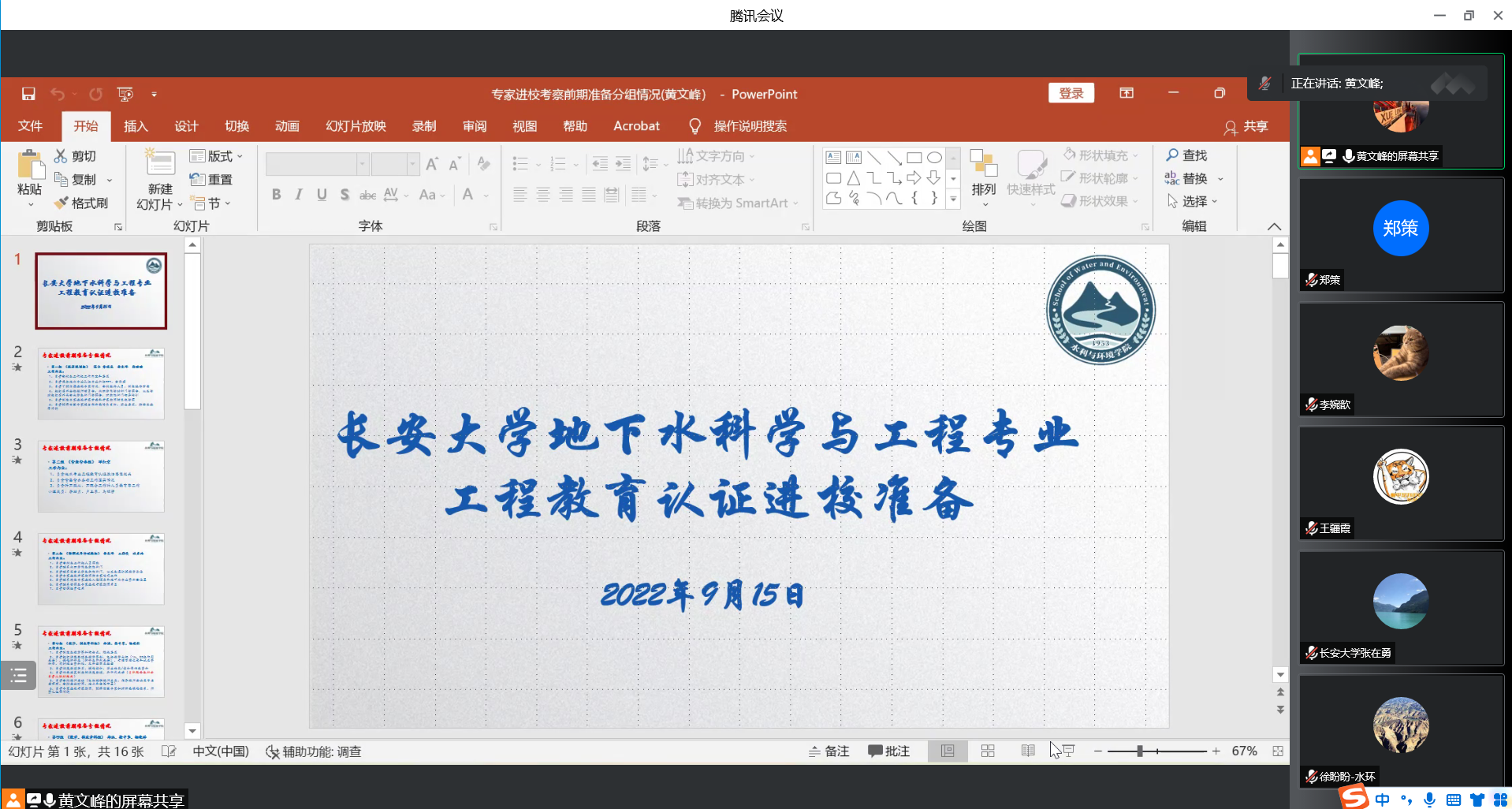 第二阶段,黄文峰汇报了地下水科学与工程专业工程教育认证工作进展情况,列举了自评报告审核反馈意见中存在的问题,并对接下来的专家进校考查工作进行细化、分解和安排,制定了包括统筹规划在内的9个工作组及每个工作组任务清单和时间进度安排。同时强调,专业认证是近期最重要的工作,需要全系老师的认真准备、共同努力,并且依靠学校、学院的大力支持,才有希望通过,要求各老师一定要高度重视并全力参与到相关工作中。