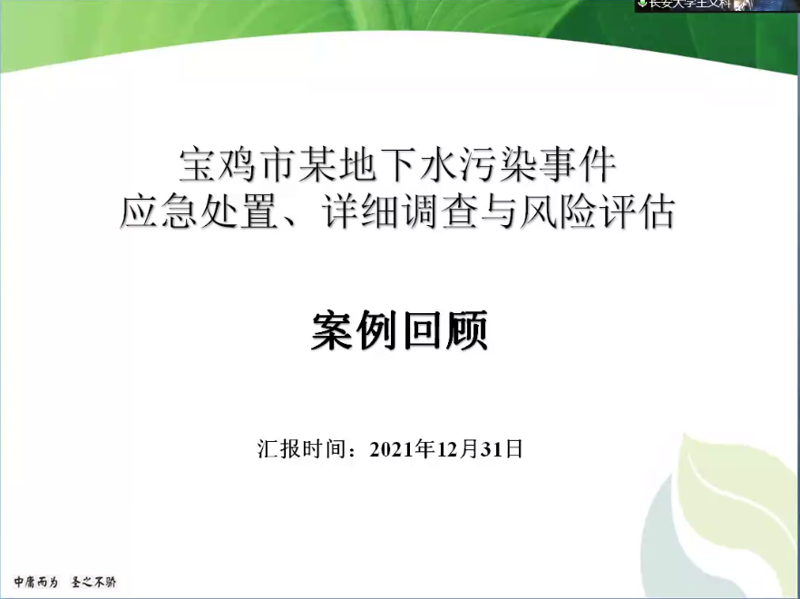 讲座的内容主要从四个方面展开。首先,王文科教授生动详细地介绍了地下水污染相关的基本概念。其次,以陕西省为例自南向北依次讲解了不同地区主要的地下水类型、地下水文过程和污染源,介绍了研究团队对陕西省地下水污染防治开展的相关研究和取得的丰硕成果,尤其是针对渭河流域形成的“土壤-地下水污染风险管控的研究范式”。然后,针对目前研究中可能存在的机理研究薄弱、保护与治理中缺乏地学思维、河流与地下水转化等问题,分享了他的深入思考和见解。最后,在“地下水污染防治策略”方面,王文科教授以2021年“宝鸡市某地下水污染事件应急处置、详细调查与风险评估”为案例生动地讲授了在面对地下水污染问题时候应该从哪些方面进行思考,进而制定相应的防治与治理策略。