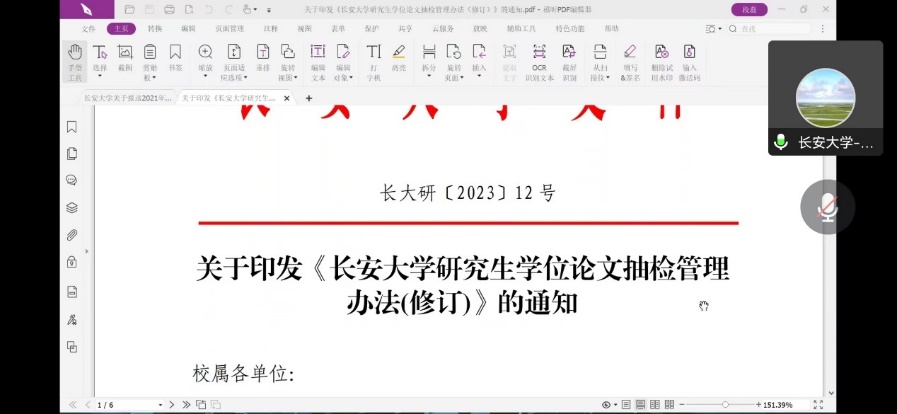 研究生学位论文抽检管理办法》,再次重申了研究生学位论文质量的重要性,他要求各位导师务必严把学位论文质量关,切实提高学院研究生培养质量。
