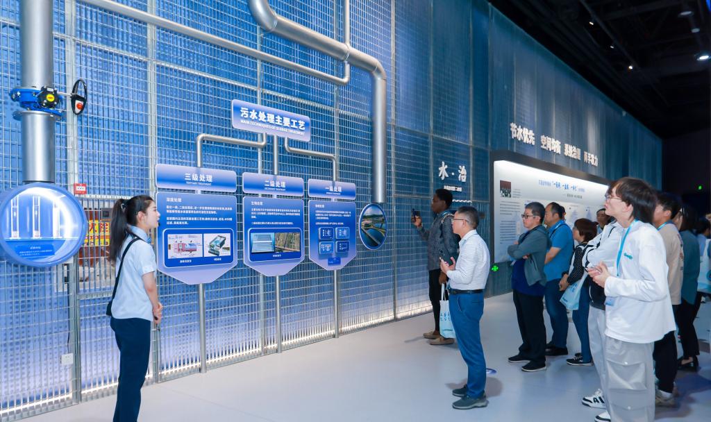 活动第二站参观了西安市第三污水处理厂地下式运行系统、西安水务·再生水展馆。展馆通过艺术视频、图文展板和实物模型,呈现了工业革命以来水污染带来的灾害和我国在水污染防治方面做出的主要成绩,同时生动展示了西安市污水处理行业起源诞生、探索创业、艰苦奋斗、蓬勃发展的历程,西安市污水处理行业的格局变化,以及在水污染防治、水环境治理、再生水利用、污泥处置等方面的工作成效,让师生更加切身体会到了水资源保护的重要性。