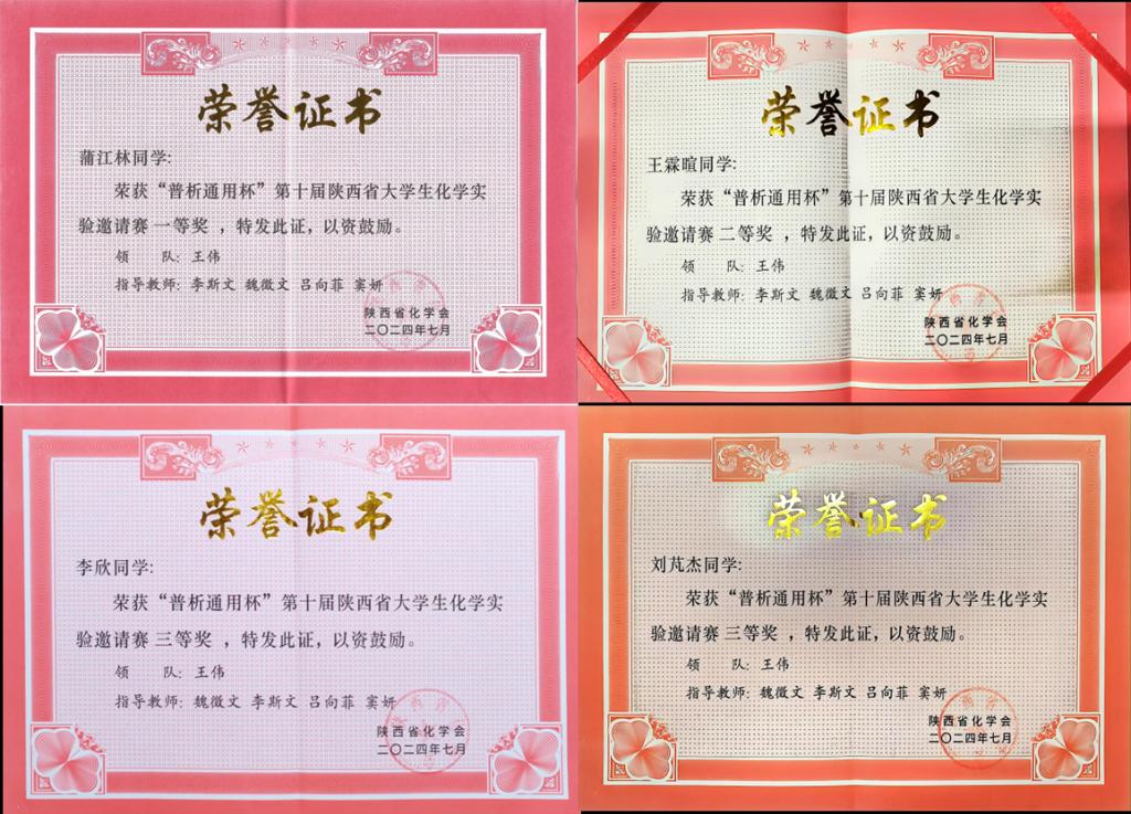 学生从陕西省26所高校、108名学生的激烈竞争中脱颖而出,蒲江林同学荣获一等奖,王霖暄同学荣获二等奖,刘芃杰同学和李欣同学分别荣获三等奖,我校获得团体优秀奖。