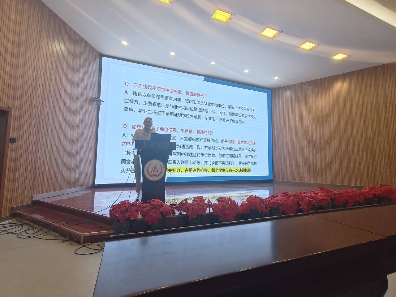 在南北校区分别开展了2026届本科生、研究生毕业生就业指导会。学院党委副书记刘扬,学办主任谈震,本科生辅导员伊力夏提,研究生辅导员于舵、余浩然及2026届毕业生参会。