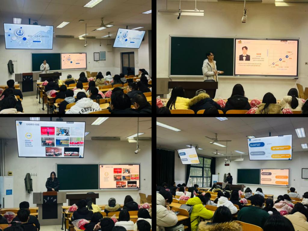 为了进一步帮助学生明晰自己的大学生涯规划,在202615日,邀请了本专业优秀毕业生毛永伟和孙文静同学为大家做了“个人发展规划讲座及学习方法交流”的专题讲座。二位学长学姐分别以“规划,让未来清晰可见”和“学习生活经验分享交流”为题,为大家分享了自己在大学期间的学习习惯和发展经验,并结合他们自身的亲身经历与感悟,为大家提出了详细的建议,包括学习目标、学习规划、发展路径、推免保研、科技竞赛、科研项目、兴趣爱好、集体活动等各个方面。以自身为例,引导大家细化大学生涯规划。