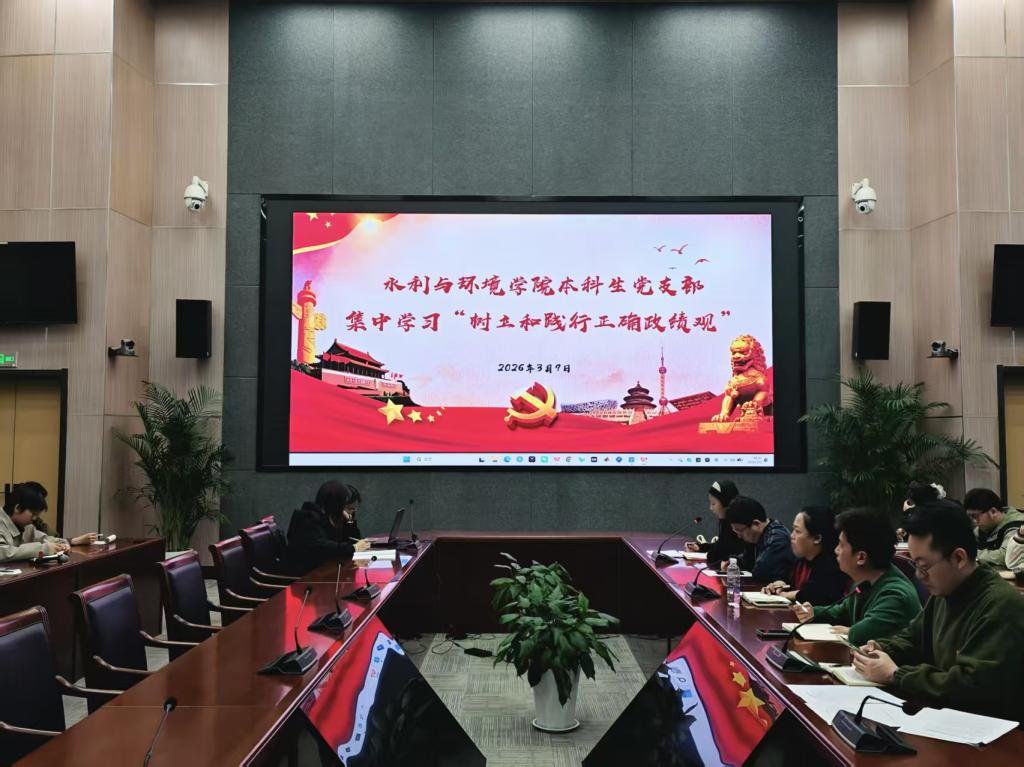 集体学习环节,学院本科生党支部依次学习党的二十届四中全会精神、树立和践行正确政绩观学习教育和全国两会中关于美丽中国建设的相关内容,李金洋重点阐述“十五五”时期战略定位与发展必须遵循的“六个坚持”原则,指出全会将建设美丽中国、推进碳达峰碳中和作为重要任务,与学院优势学科方向高度契合,勉励各位党员坚定专业信心,将个人发展融入国家战略需求;寇钰婕结合习近平总书记关于政绩观的重要论述,详细阐释“政绩为谁而树”的根本问题,强调只有党性坚强才能保证政绩观不出偏差,号召师生党员把锤炼党性作为终身课题,坚持实字当头、干字为先。学生党员张佳佳聚焦全国两会关于美丽中国建设精神,以“绿色转型”为关键词梳理政府工作报告中关于加强生态环境综合治理、发展绿色低碳经济等战略部署,呼吁同学们做绿色转型的践行者。